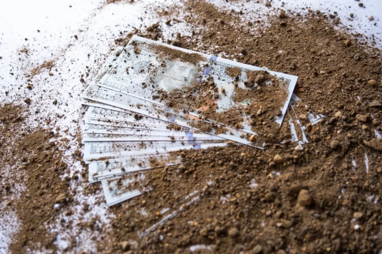 Той дръпна ъгъла на и падна назад от изумление. Купища доларови банкноти бяха скрити под найлона.