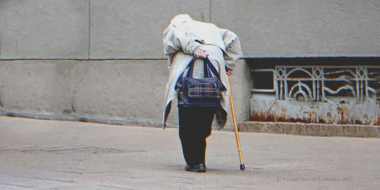 Беше възрастна жена, седнала на пейка пред магазина, обгърнала тялото си с ръце и треперещи неудържимо на студа устни. Жената се люлееше напред-назад, опитвайки се да се стопли, въпреки че нямаше достатъчно топли дрехи.