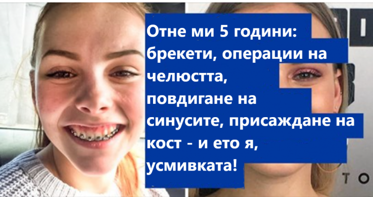„5 години: брекети, операции на челюстта, повдигане на синусите, – и ето я, усмивката!“