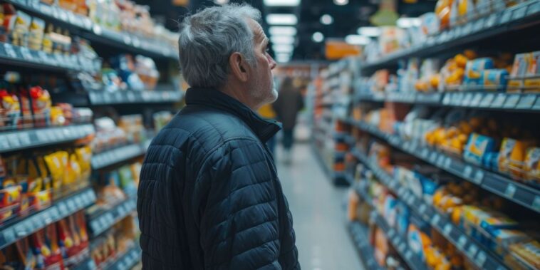 Той се вгледа прекалено дълго в рафта. „Синята опаковка… не, чакайте… жълтата. Да, жълтата.“