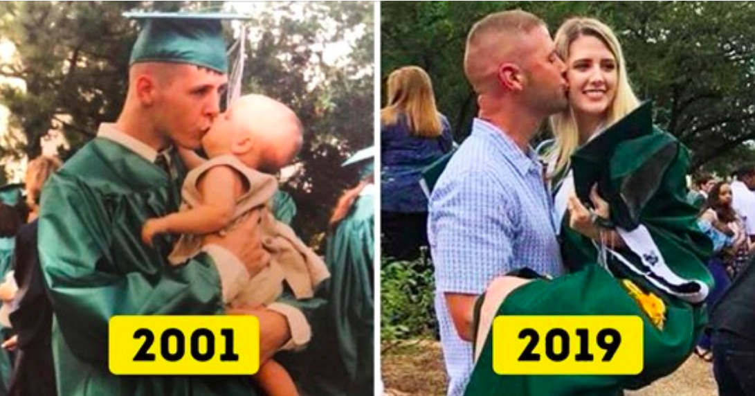 1. Той заведе дъщеря си на дипломирането си и 18 години по-късно гордо я придружи на нейното дипломиране.