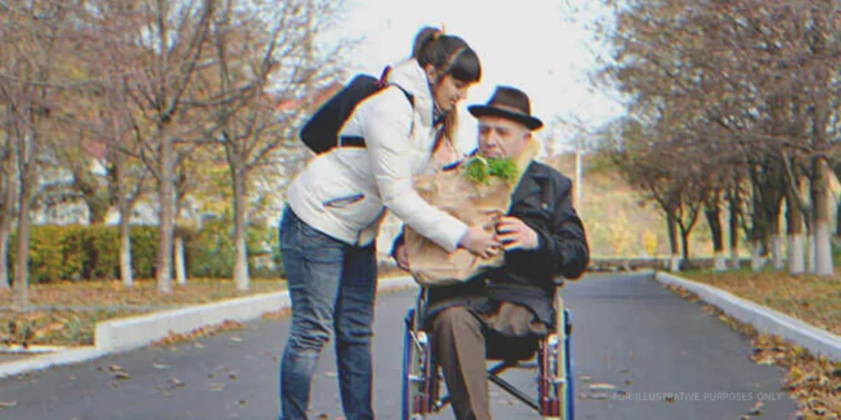 Дама купува хранителни продукти за седмица за старец с увреждания в парка, по-късно наследява имението му