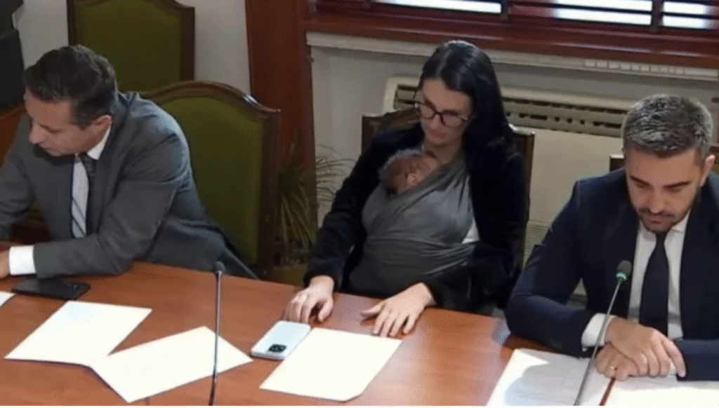 Необичайна, но вдъхновяваща гледка привлече вниманието на албанските медии – депутатката Илва Джузи от управляващата Социалистическа партия се появи на заседание на парламентарната комисия по природни източници, инфраструктура и устойчиво развитие… с бебето си!