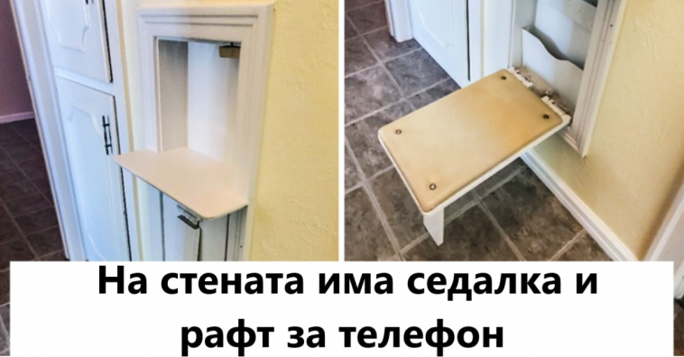 Тази къща е на повече от 70 години. На стената има седалка и рафт за телефон.