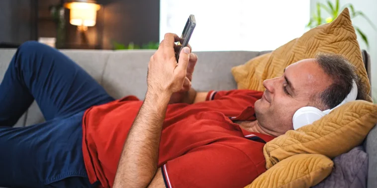 В същото време съпругът ѝ Марк се беше разпрострял на дивана с контролер в ръка и очи, залепени за телевизионния екран.