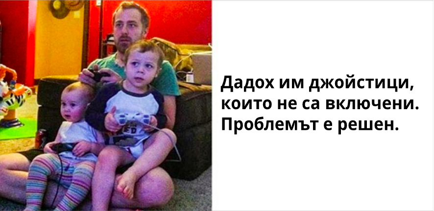 2. „Просто им давам джойстици, които не са свързани и играят така с часове.“