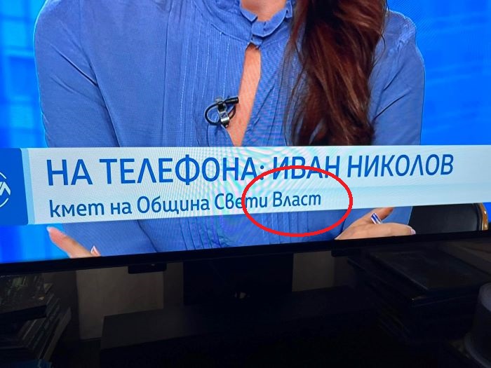 В ефир бе включен кметът на Свети Влас Иван Николов, за да коментира наводненията в района. Под кадъра обаче се появи надпис: