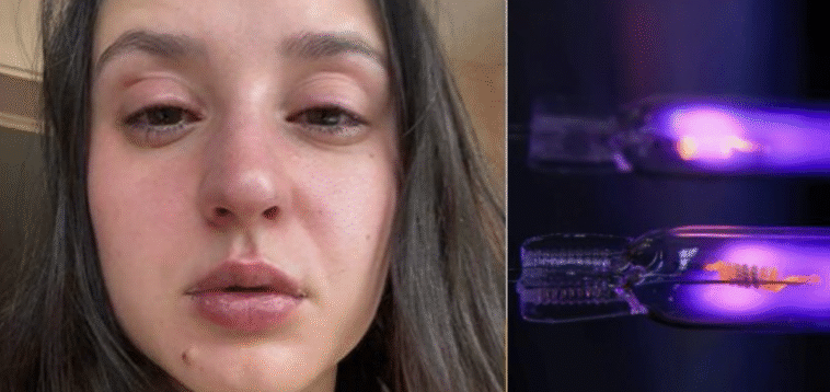 По нейни думи лампата е работила в продължение на часове, причинявайки силно подуване на лицето, болка и замъглено зрение.