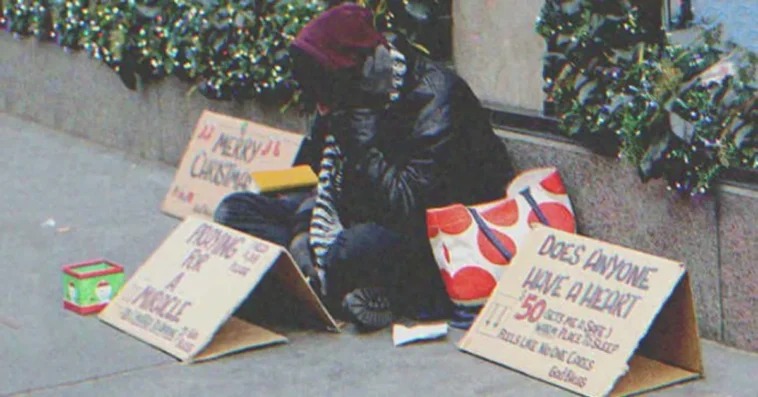 Човекът държал табела с надпис „Имам нужда от пари за храна“. Очите на авторката се замъглили и не можела да мисли за нищо друго, освен да направи каквото може за този безпомощен мъж, така че отишла при него.