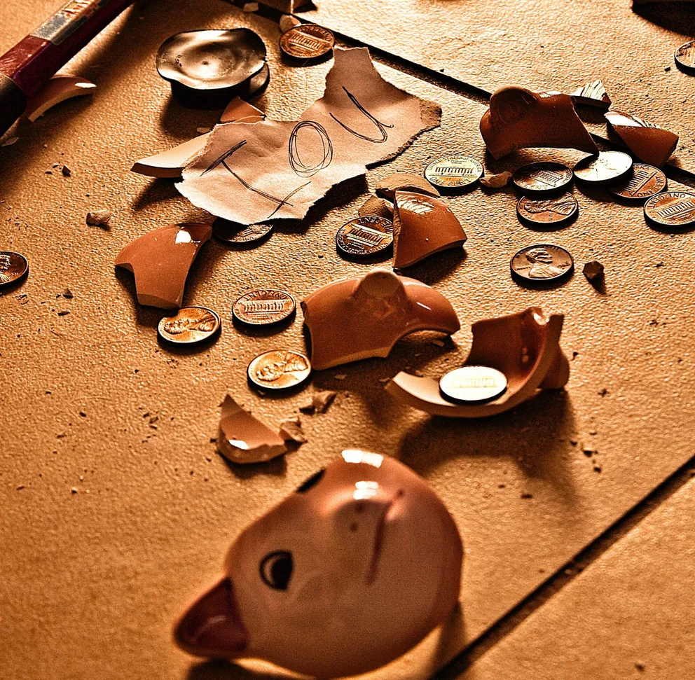 Керамичната фигура се пръсна на парчета, позволявайки на развълнуваното момче да зърне богатството си.