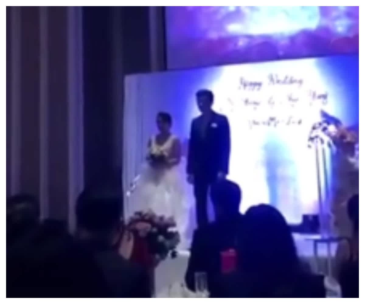 Сватбата се е състояла още през 2019 г., но наскоро беше публикувана в TikTok и интернет има много чувства към дивото събитие. Във видеото можете да видите как ужасените гости реагират, докато видеото се възпроизвежда на огромен екран на проектор.
