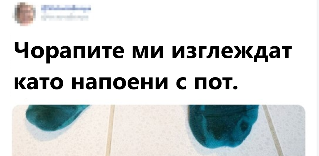1. „Чорапите ми изглеждат така, сякаш винаги са напоени с пот“