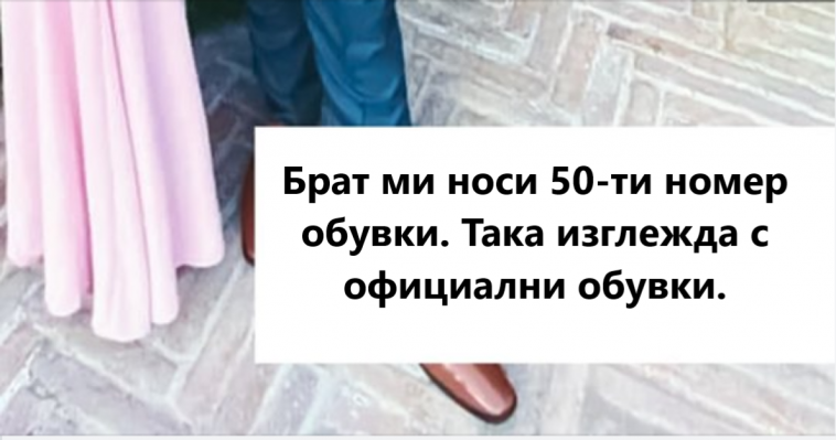 12. „Брат ми носи 50-ти размер обувки. Ето как изглежда с официални обувки.“