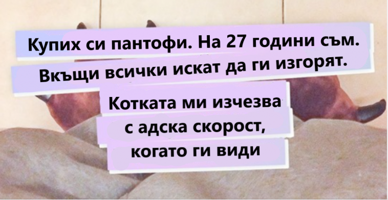 „Купих си пантофи. На 27 години съм. Вкъщи всички искат да ги изгорят. Котката изчезва с адска скорост, когато ги види“