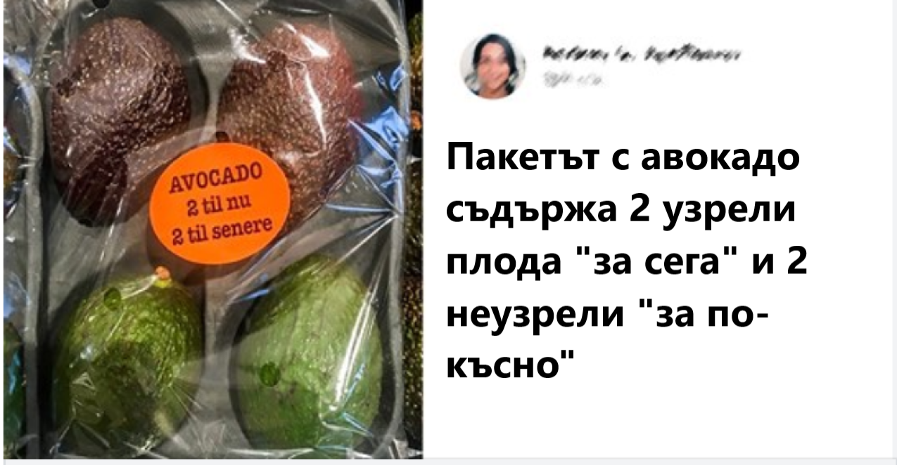 Пакетът с авокадо съдържа 2 узрели плода „за сега“ и 2 неузрели „за по-късно“