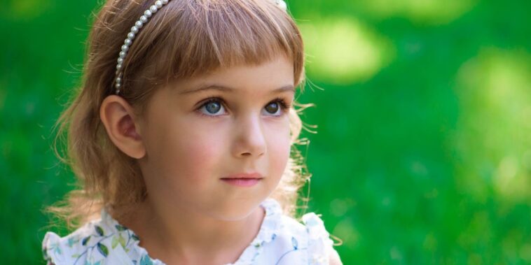Бебе с едно кехлибарено и едно синьо око.