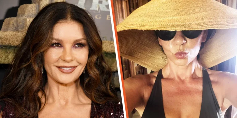 Катрин Зита-Джоунс явно се подмладява, тъй като изглежда зашеметяващо на наскоро публикувана снимка в Instagram. Актрисата привлече вниманието на феновете с бански с дълбоко деколте и младежки блясък.