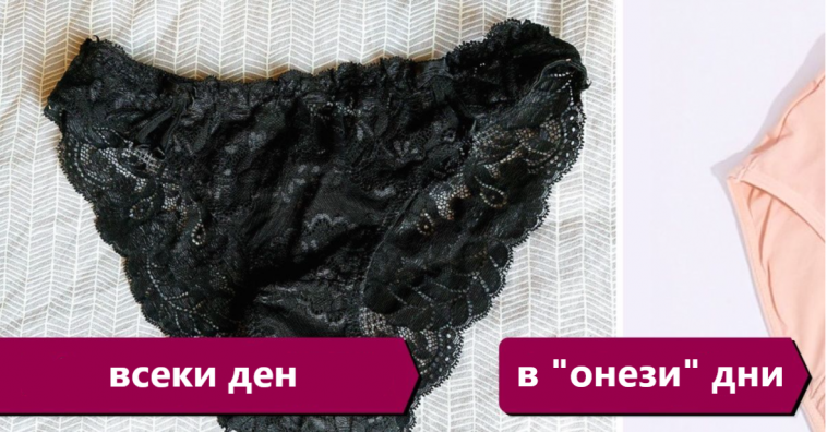 Тези бикини изглеждат по същия начин като обикновените – без излишен обем, но имат допълнителни слоеве от специален плат в долната част. Можете да ги комбинирате с превръзки или тампони, или можете (особено в последните дни от менструацията) да носите само тях, без да прибягвате до допълнителна защита. Можете да използвате един чифт бельо за „тези дни“ от 2 до 5 години – с редовно пране в студена вода.