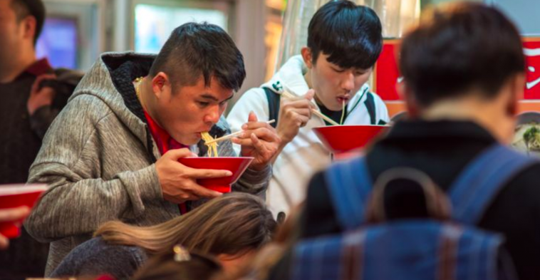 Парадоксално е, че японците, които гледат с неодобрение невъзпитаните чужденци, се трансформират напълно, когато става дума за ядене на нудъли. Силното сърбане не само не се осъжда, но и се приветства по всякакъв възможен начин, особено когато става въпрос за нудъли от елда, наречени соба.