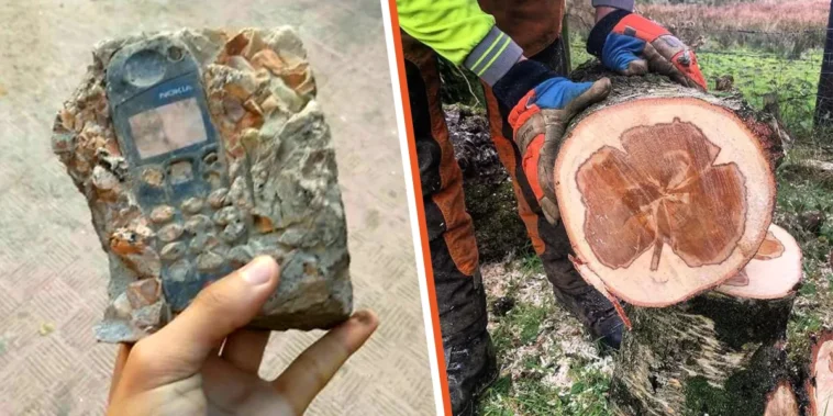 Потребител направи странно откритие и сподели новината с други потребители. Снимката, която публикуваха, показва нещо, което прилича на брезов ствол с нещо подобно на трилистна детелина, естествено издълбана в него. Останалата половина от дънера съдържаше същата шарка.