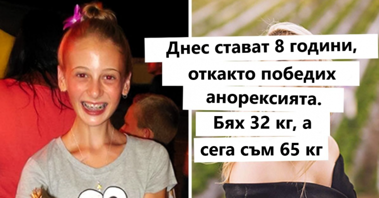 „Днес стават точно 8 години, откакто се възстанових от анорексия. Бях 32 кг, а сега съм 65 кг“