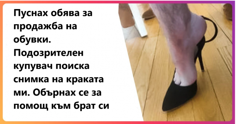 „Пуснах обява за продажба на обувки. Подозрителен купувач поиска снимка на краката ми. Обърнах се за помощ към брат си“