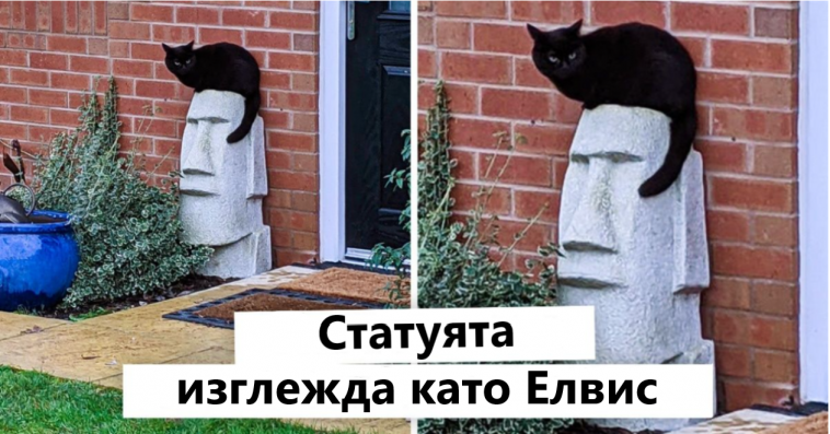 1. Котката направи тази статуя да изглежда като Елвис.