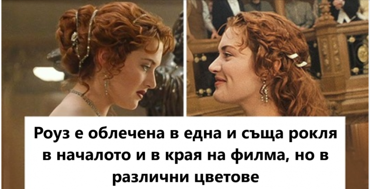 И така, в последната сцена на филма Роуз е облечена в същата рокля, но в бяло. Дизайнът на роклята е абсолютно същият като на тази, който тя носеше, когато се срещна с Джак, но цветът казва, че няма повече пречки за любовта между Джак и Роуз.