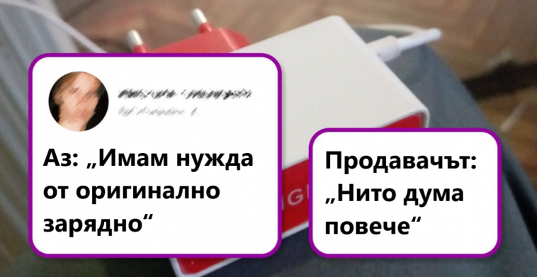 3. „Аз: „Имам нужда от оригинално зарядно“. Продавачът: „Нито дума повече“