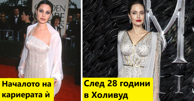 Анджелина Джоли през 1993 г. и след 28 години в Холивуд