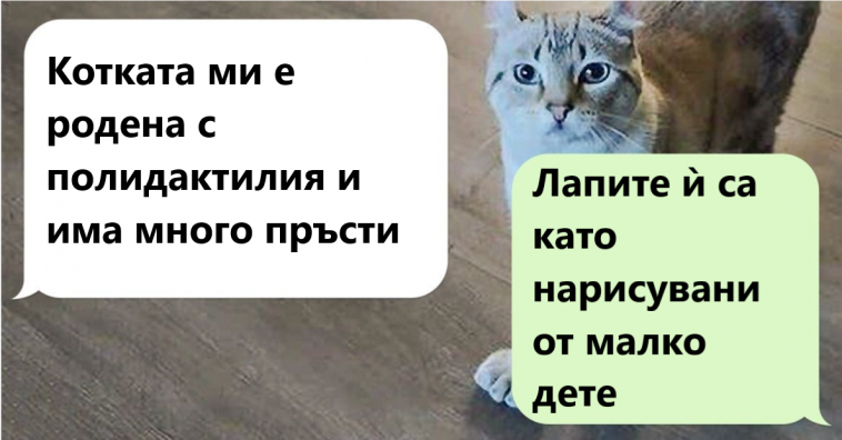 „Котката ми е родена с полидактилия, така че има много пръсти.“