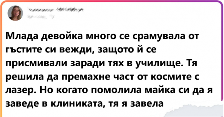 Майка ми пътувала с градски транспост, а възрастна жена с дебели очила седяла до нея. Жената слязла от автобуса, но на седалката останал портфейл с огромна сума за онова време. Мама включила на режим „Шерлок Холмс“ и започнала да разсъждава логично: на практика жената била сляпа, слязла на автобусната спирка близо до очната болница. А възрастните хора просто не носят такива суми със себе си, което означава, че е била на път за очната болница за операция. Отишла в болницата и попитала дали има възрастна жена, която е дошла на операция и е загубила портфейла си. Веднага я отвели при обляната в сълзи жена. Цялата болница дошла да види майка ми!