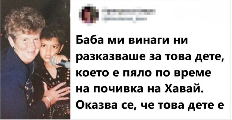 „Баба ми винаги ни разказваше за това дете, което е пяло на ваканцията й на Хавай. Оказва се, че това дете е Бруно Марс. 1990 г.“