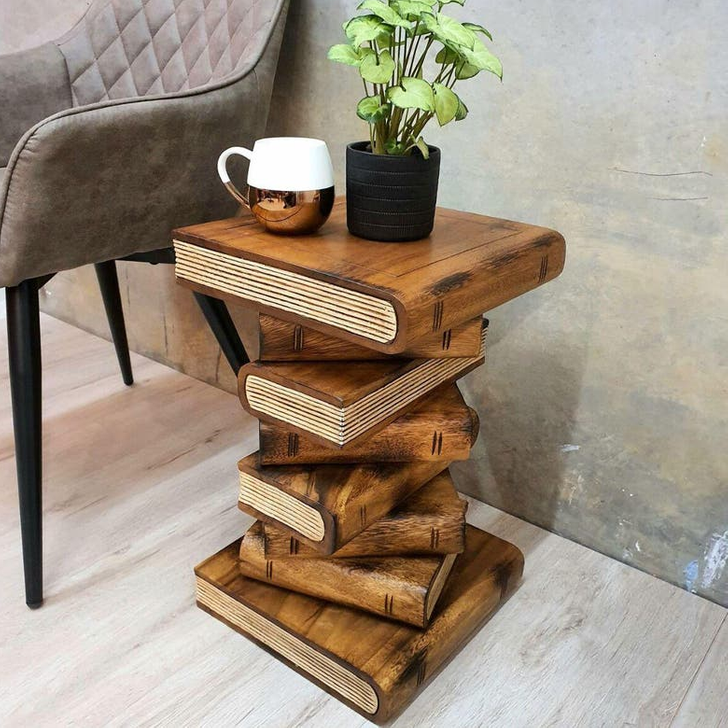 5. „Дърворезба на купчина книги, която служи и като странична маса.“