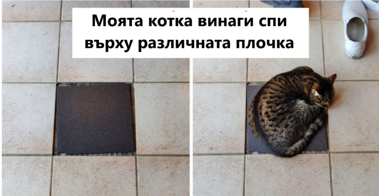 16. „Моята котка винаги спи върху различната плочка в къщата.“