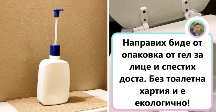 16. „Направих биде от опаковка от гел за лице и спестих доста. Без тоалетна хартия и е екологично!“
