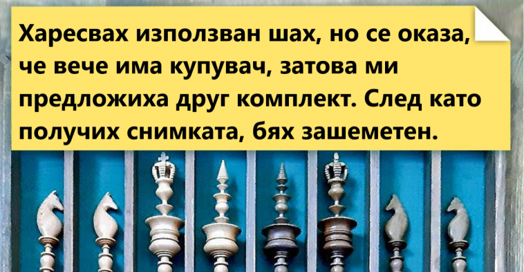 „Харесвах използван шах, но се оказа, че вече има купувач, затова ми предложиха друг комплект. След като получих снимката, бях зашеметен“