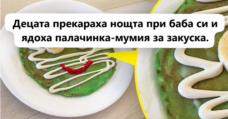 „Децата прекараха нощта при баба си и ядоха палачинка-мумия за закуска.“