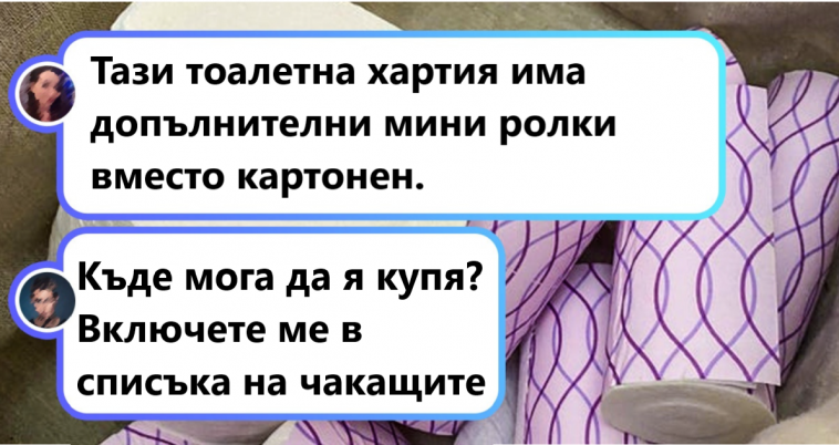 Тази тоалетна хартия има допълнителни мини ролки вместо картонен.