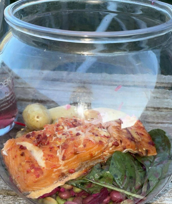 Каква жестока ирония да сервирате печена сьомга в аквариум.