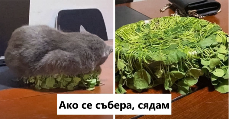 12. „Засадих овесена трева, за да може котката да я яде, но тя реши, че е удобно легло.“