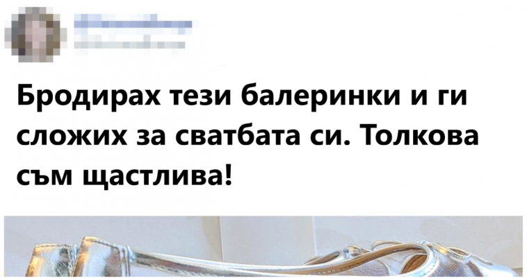 „Бродирах тези балеринки и ги сложих за сватбата си. Толкова съм щастлива!“