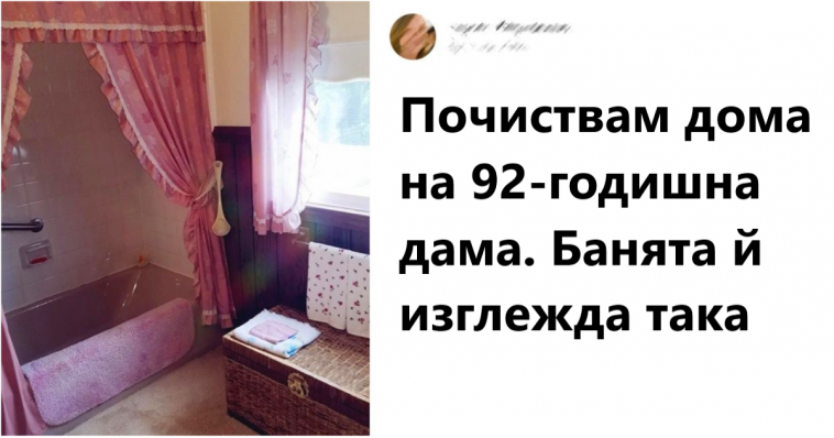 „Почиствам къщата на 92-годишна дама. Банята й изглежда така. Всичко е толкова сладко, а подът е с мокет.“