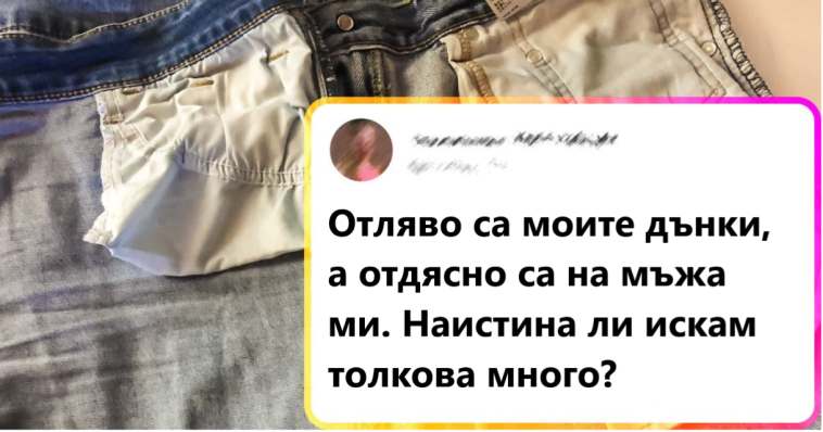 4. „Просто искам по-големи джобове, наистина ли искам толкова много? Отляво са моите дънки, а отдясно са на мъжа ми.“