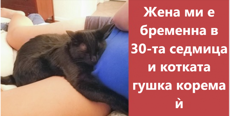 1. „Жена ми е бременна в 30-та седмица и котката й гушка корема й.“