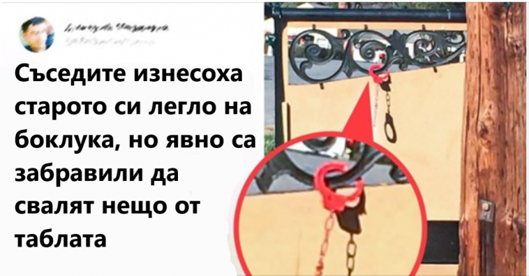 „Съседите изнесоха старото легло на боклука, но очевидно са забравили да свалят нещо от таблата“.