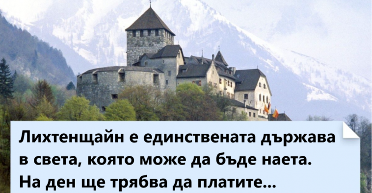 • Лихтенщайн е единствената държава в света, която може да бъде наета. Ще трябва да платите $ 70 хил. на ден. През 2010 г. Снуп Дог искаше да наеме княжеството за заснемане на видеоклип, но му беше отказано, защото не предупредил предварително за намерението си. Малко след този инцидент на уебсайта на Airbnb се появи съобщение, че Лихтенщайн може да бъде резервиран за минимум 2 нощувки. Според профила в уебсайта Лихтенщайн може да побере между 450 и 900 души, има над 500 спални и над 500 бани.