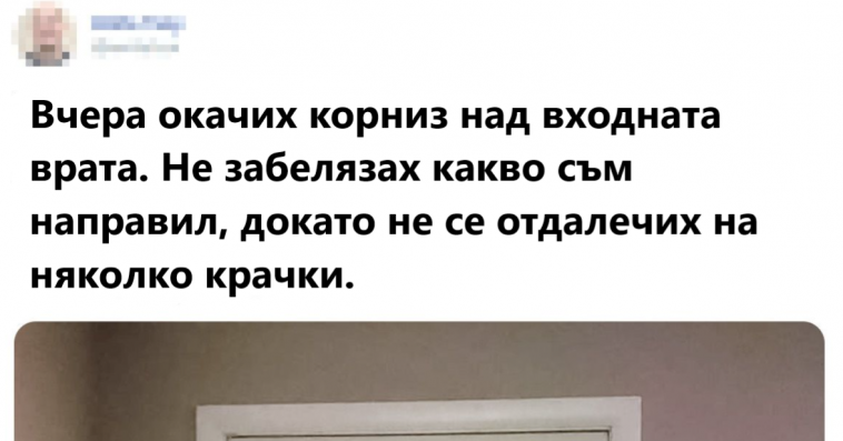 „Вчера окачих корниз над входната врата. Не забелязах какво съм направил, докато не се отдалечих на няколко крачки.“