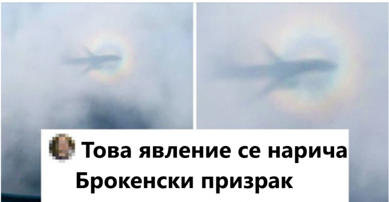 Този ефект се нарича Брокенски призрак. Това се случва, когато слънцето е зад даден обект и проектира сянката му върху мъгла или облаци. Често е придружено от светещи дъгови пръстени.