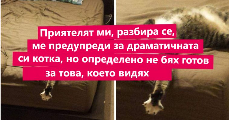 „Приятелят ми, разбира се, ме предупреди за драматичната си котка, но определено не бях готов за това, което видях.“
